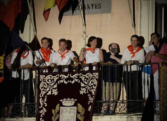 En los balcones de la Casa Consistorial el alcalde, Javier Rodríguez Palacios, y la concejala de Festejos, María Aranguren, han estado acompañados por el dibujante Malagón, autor del cartel de las Ferias, así como del resto de concejales y concejalas de la corporación.