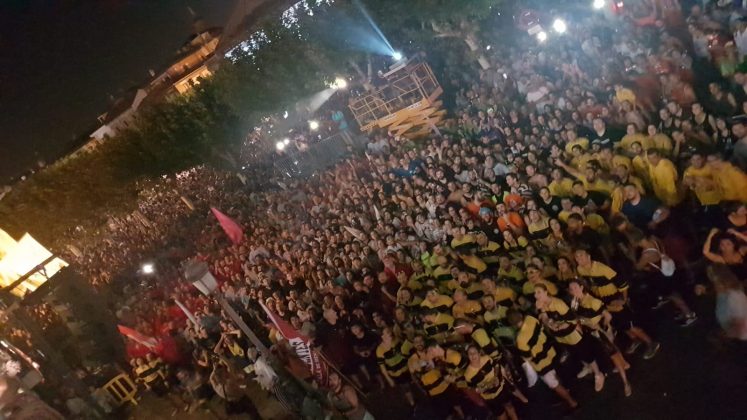 Posteriormente, las peñas festivas han colocado su estandarte en el balcón del Ayuntamiento, donde permanecerá hasta el próximo domingo día 2 de septiembre, cuando se procederá a su retirada al finalizar el desfile de carrozas.